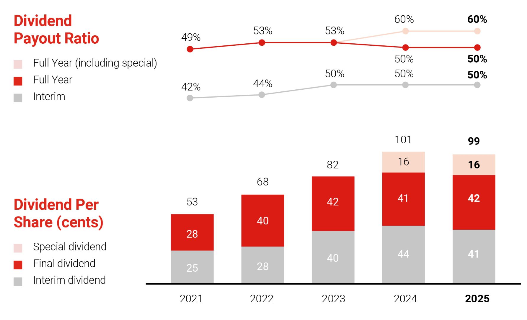 4. S$800 million in dividends may still come. The board proposed a final ordinary dividend of 42 cents and a special dividend of 16 cents, bringing total FY2025 dividends to 99 cents per share, representing 60% of net profit.