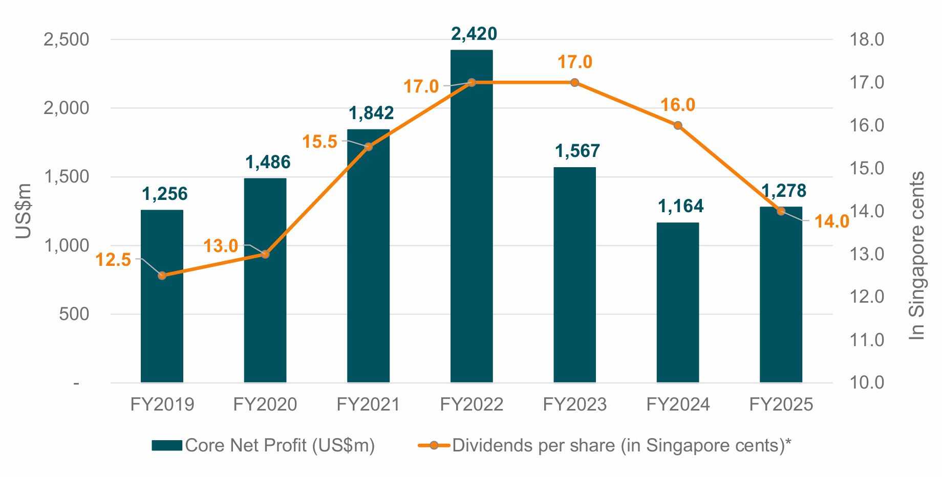 That said, the financial hit is firmly in the rear view mirror. FY2025 core net profit, stripping out all one-off charges, came in at US$1.28 billion, up 10% year-on-year. The underlying business didn’t skip a beat. That’s genuinely impressive for a company that just absorbed a US$709 million legal blow.