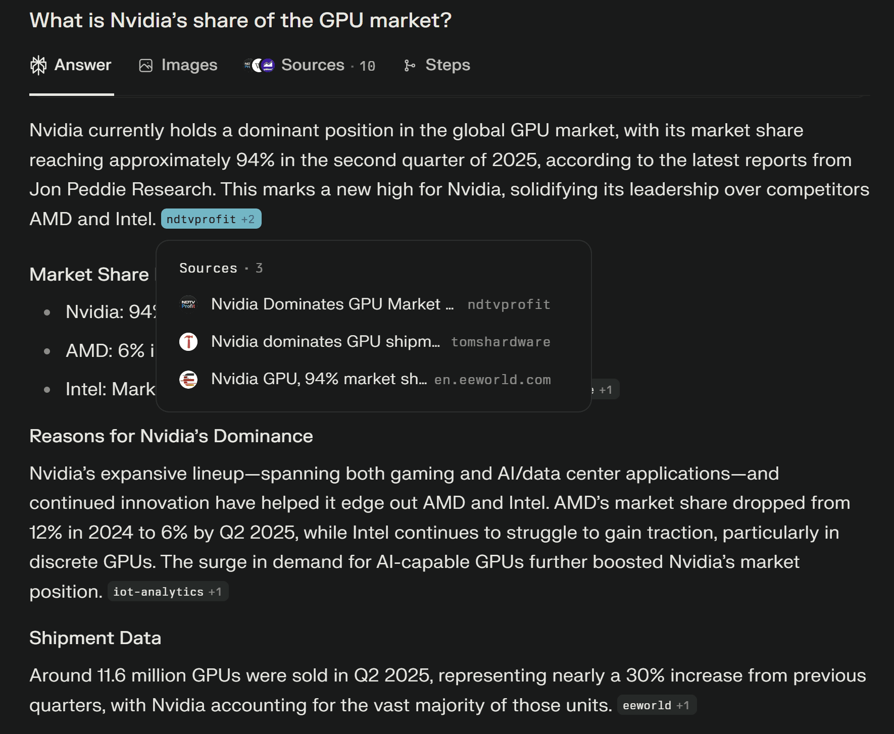 For investors, this cuts noise, saves time, and reduces the risk of acting on unreliable data. Perplexity provides a fact-based edge that strengthens any research process in a market where the smallest misinformation can sway a trade.