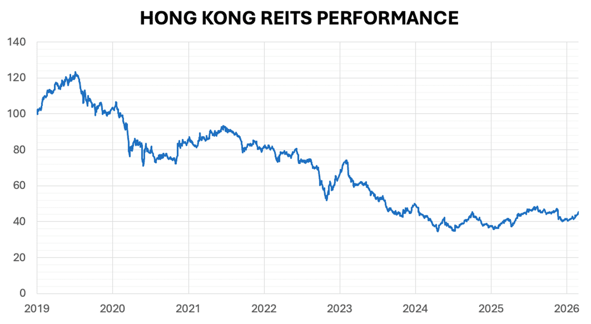 The Hong Kong REIT (HK-REIT) market in 2025 and early 2026 remains a story of deep value versus persistent structural headwinds. Unlike the sustained recoveries seen in Singapore and Malaysia, Hong Kong’s rebound has remained muted. This lackluster performance is primarily due to a broader macroeconomic slowdown. Even as the streets grew more crowded when I visited Hong Kong in 2025, tenant sales and the rental turnovers for REITs remained stubbornly below 2019 levels.